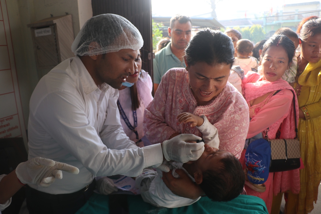यो कार्याक्रक जिल्ला समन्वय समिति बाँकेको संयोजक ज्ञानेन्द्र कुमार चौधरीले बालबलिकालाई स्वर्णविन्दु प्राशन खुवाई उद्घाटन गरेका थिए । सुनको भस्मलाई औषधिय गुणभएको घीउ र महमा मिसाएर यो खोप तयार गरी ड्रपरबाट उमेर अनुसार थोपामा खुवाउने गरिन्छ ।